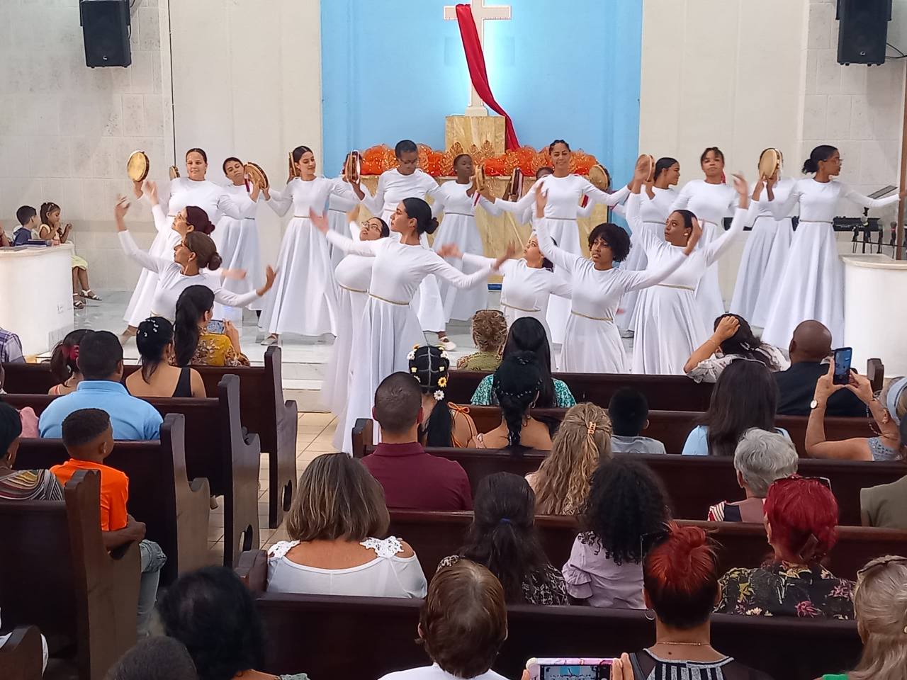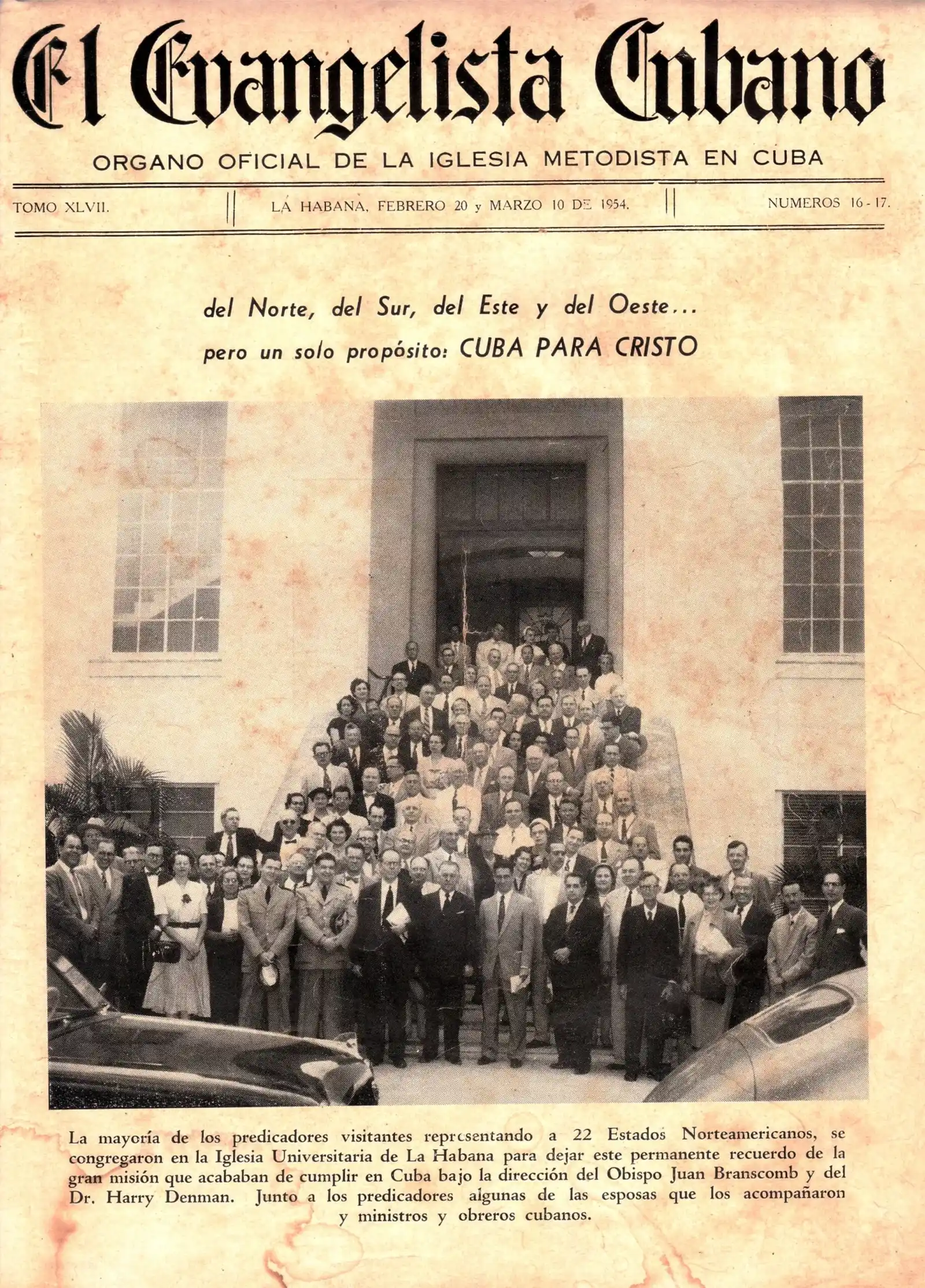 El recorte de Revista «El Evangelista Cubano», recoge una foto con la mayoría de predicadores y sus esposas, visitantes que representaban a 22 Estados Norteamericanos y ministros y obreros cubanos.